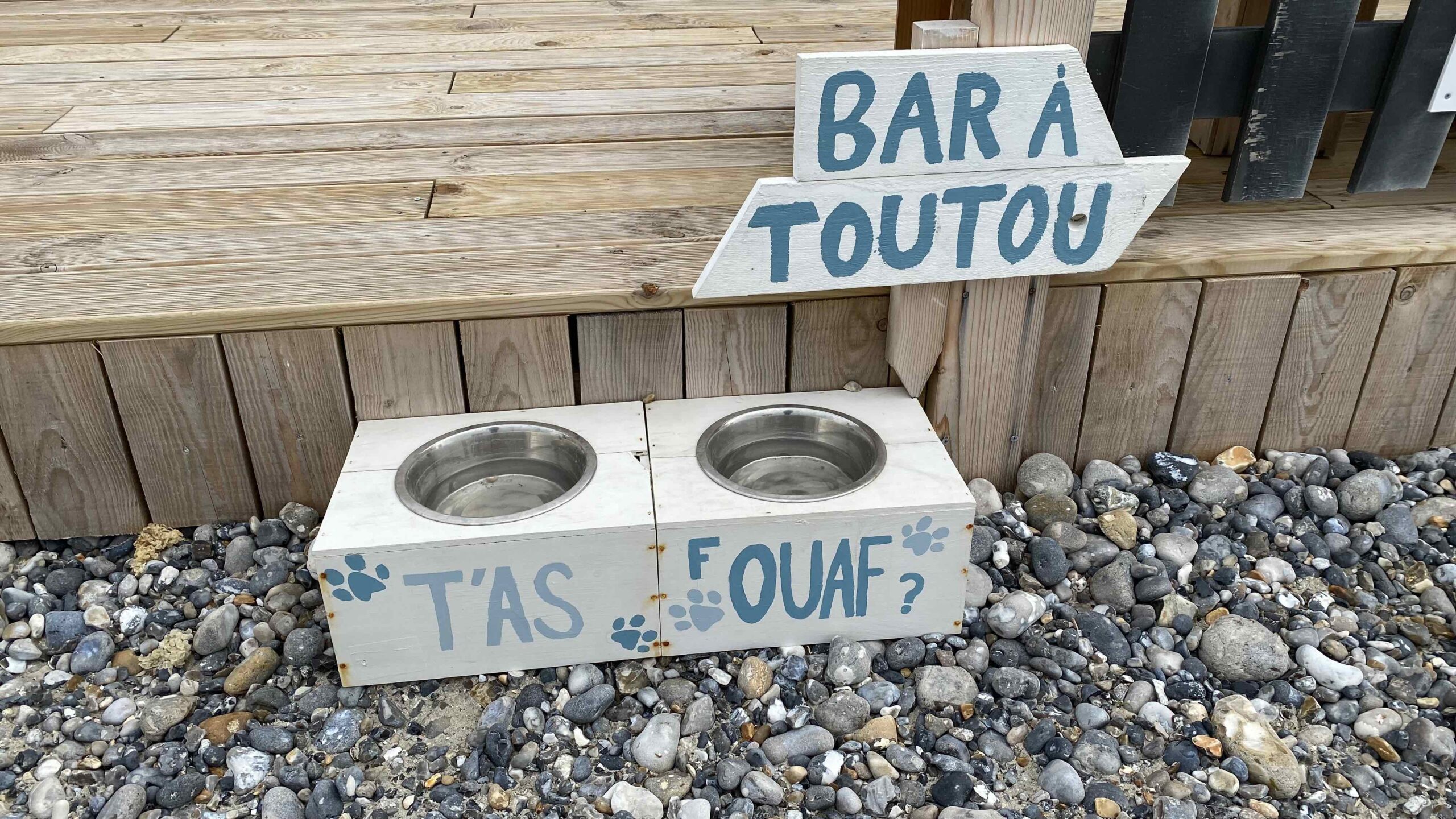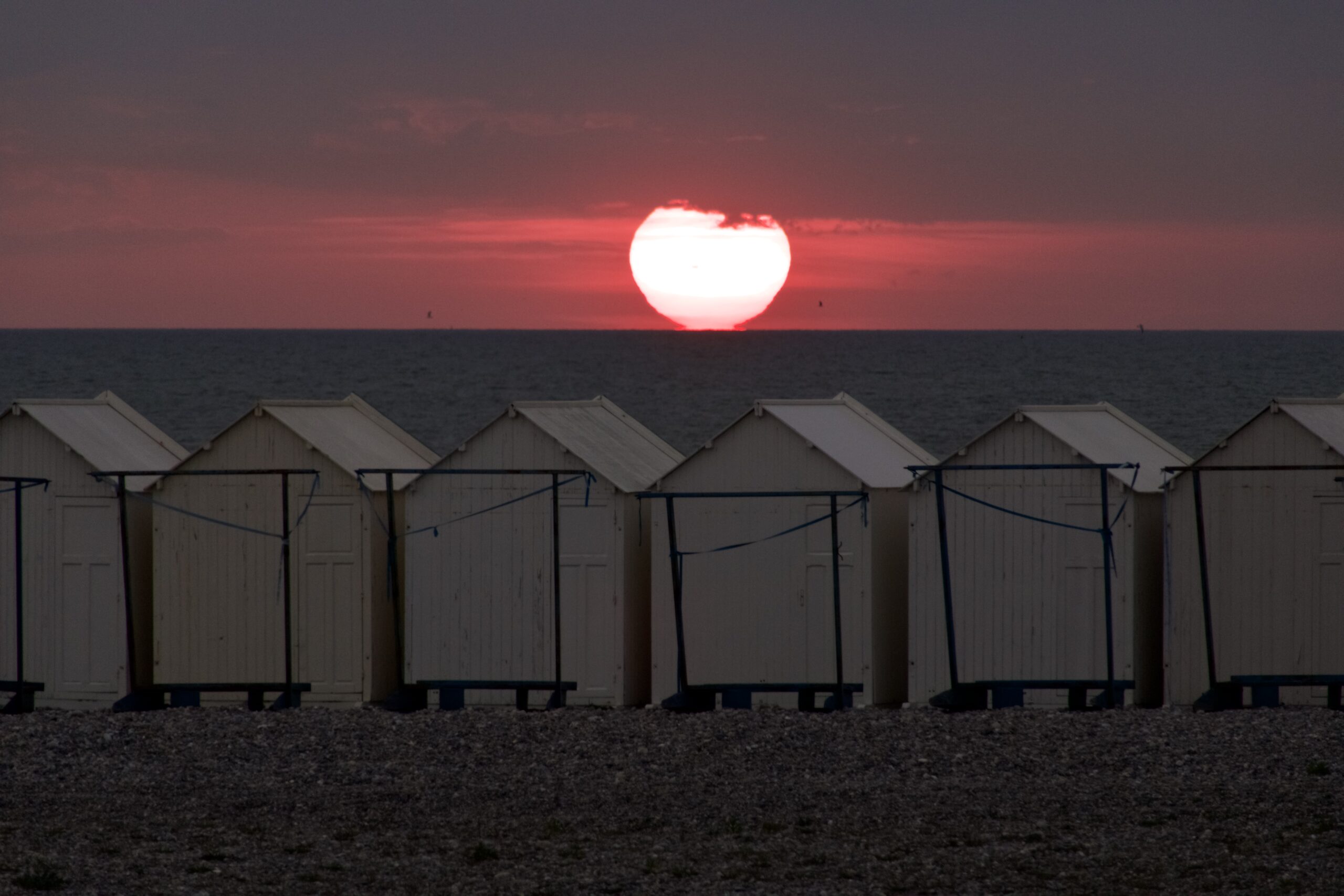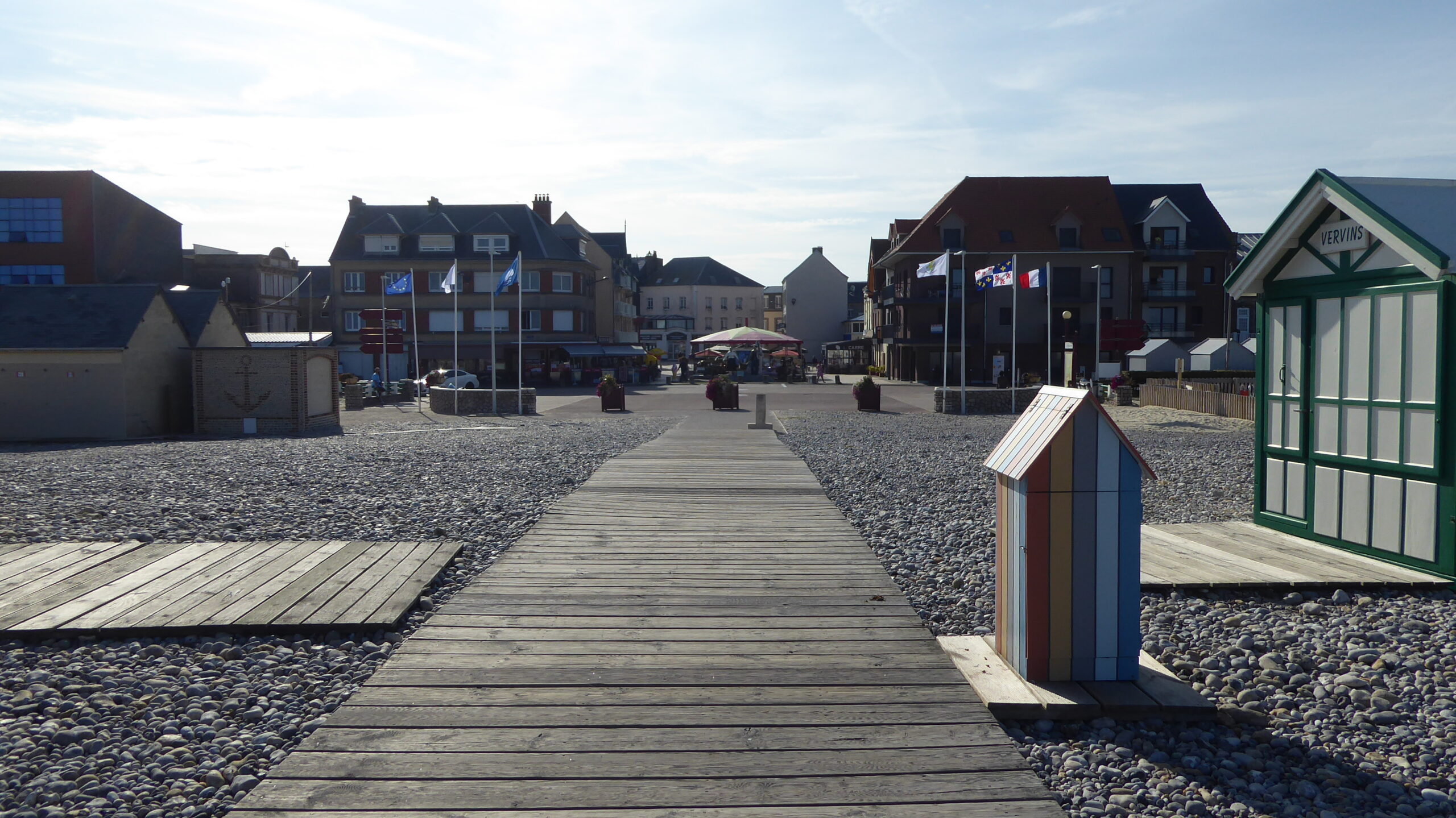 Le chemin de planches et les cabines de plage