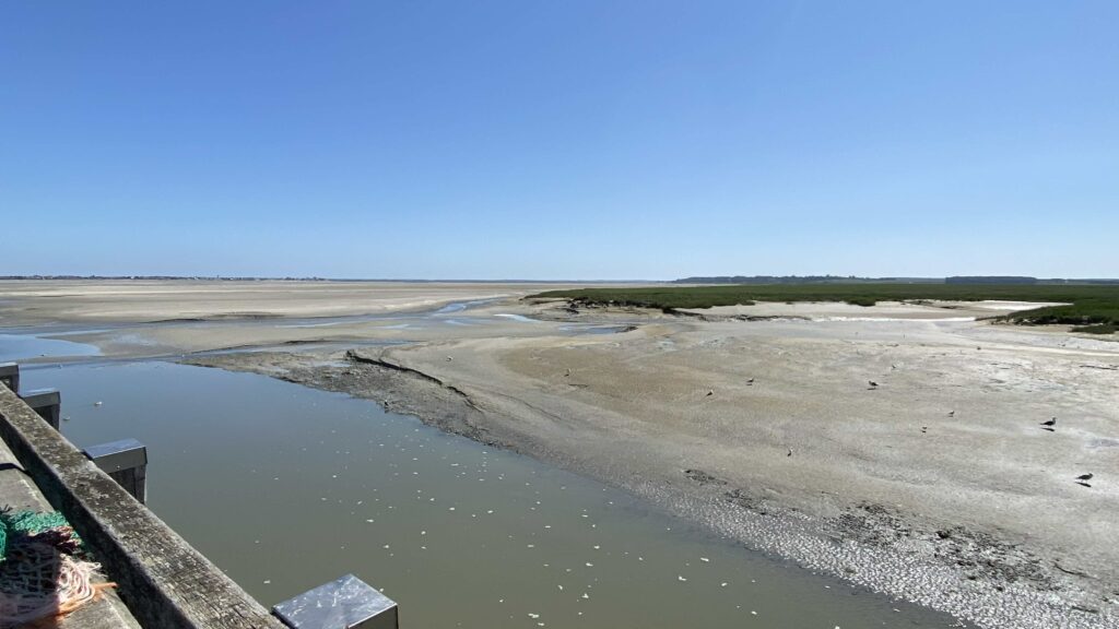 On peut apercevoir des phoques allongés sur les bancs de sable à marée basse.