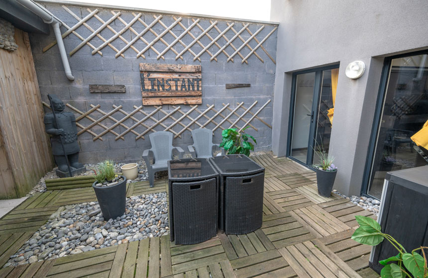 Terrasse privative avec salon de jardin en souplex